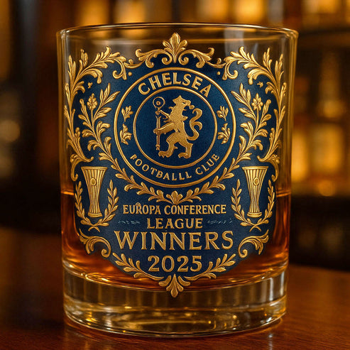 Chelsea 2025 Conference League Champions Whisky Glass