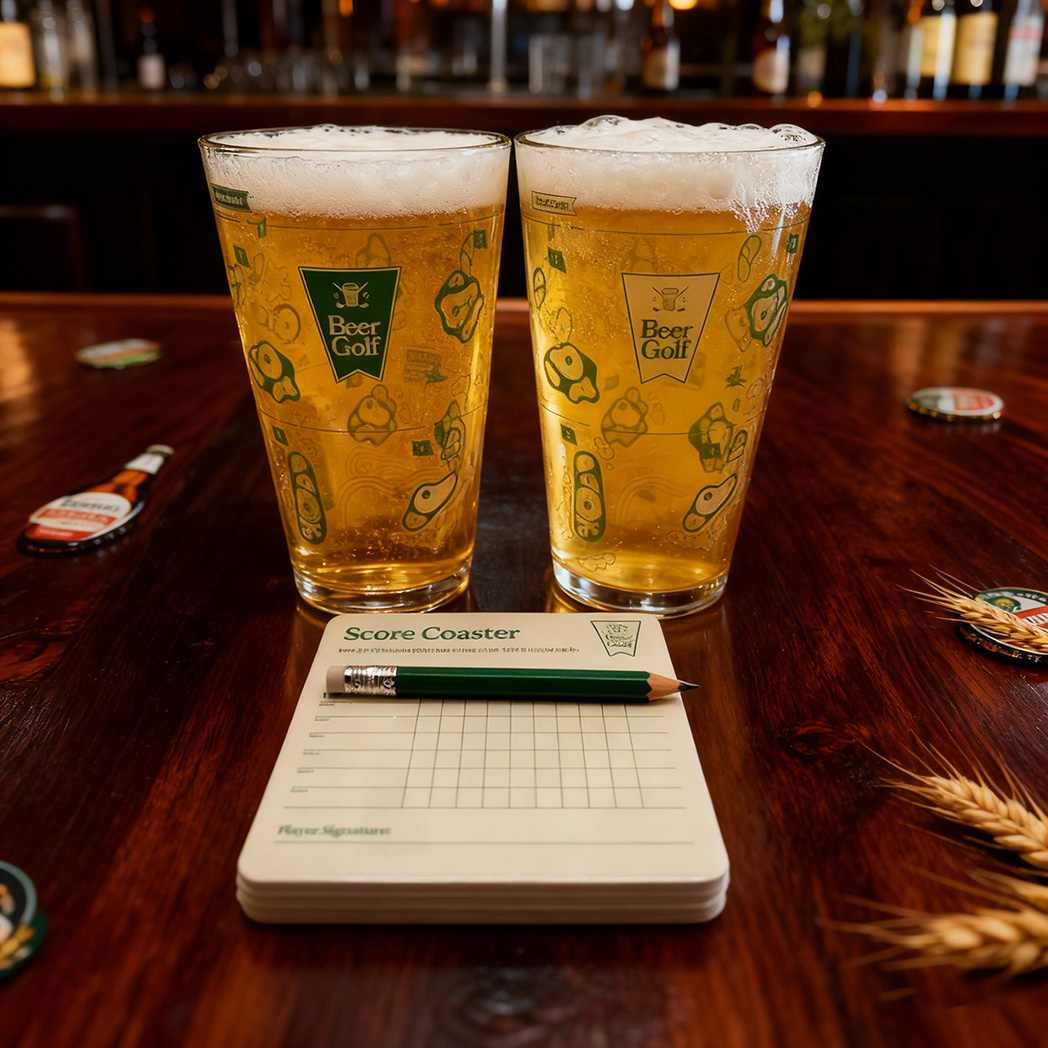 Grab a friend and tee off with Beer Golf, the greatest game on glass! The set includes two (2) premium, dishwasher-safe 16 oz pint glasses featuring a 9-hole Beer Golf course, six (6) scorecard coasters and one (1) golf pencil to track every swig.