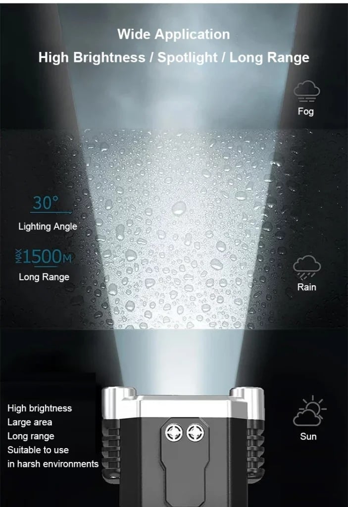 Lighting mode: Main light: strong light/low light/strobe/side COB light, this flashlight can fully meet your lighting needs.