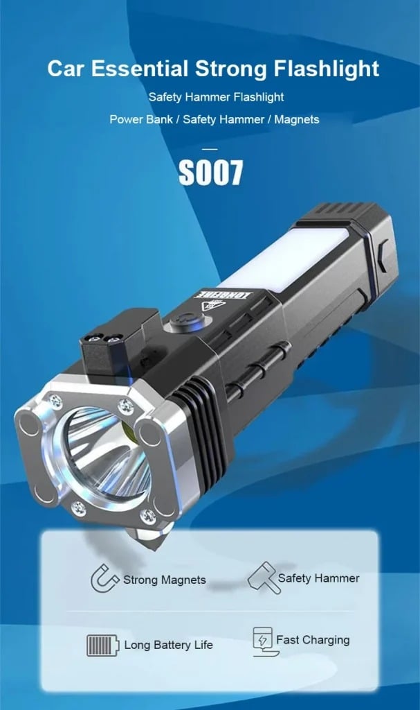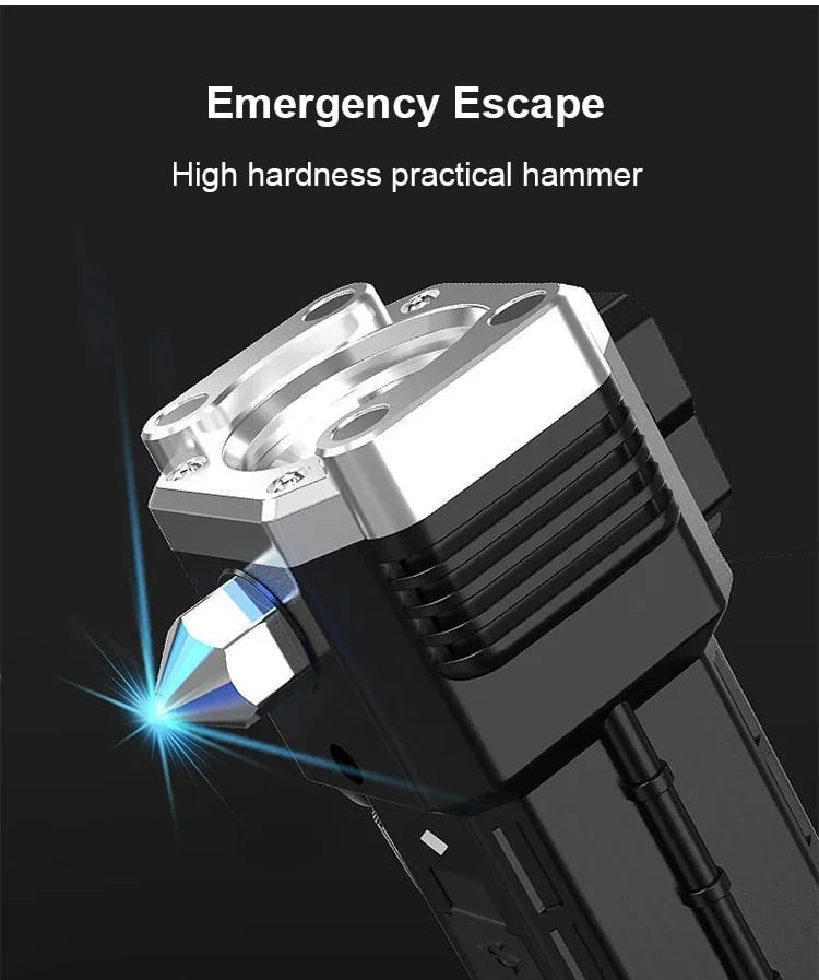 The left side of the flashlight is equipped with a high-hardness alloy hammer. It can be used to escape in an emergency.