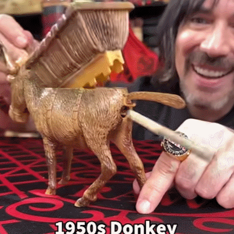 This isn’t just a decoration — it’s a working cigarette dispenser hidden inside a vintage-style donkey.