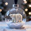 Encased in crystal glass, a majestic polar bear walks across icy snow, glimmering under golden starlight.