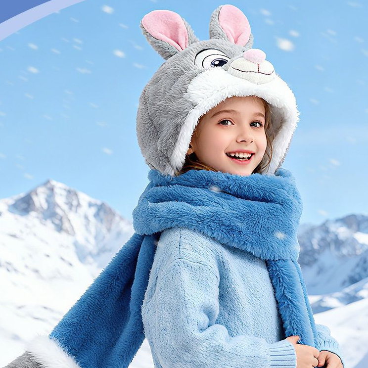 Windproof Cartoon Hood: Thick, fleece-lined animal hat with cute ears and embroidered face keeps cold air out and warmth in.