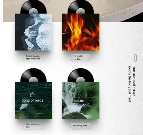 🎶【Sounds of nature for relaxation】 Apart from playing vinyl records and streaming music, Vinyl Player also offers sounds of nature to help you relax and unwind. There are four built-in sounds: bonfire burning, birds chirping and insects chirping gurgling water, and waves flowing. You can also connect your smartphone wirelessly, or simply plug in a USB or TF card for versatile music playback options to suit your preferences.