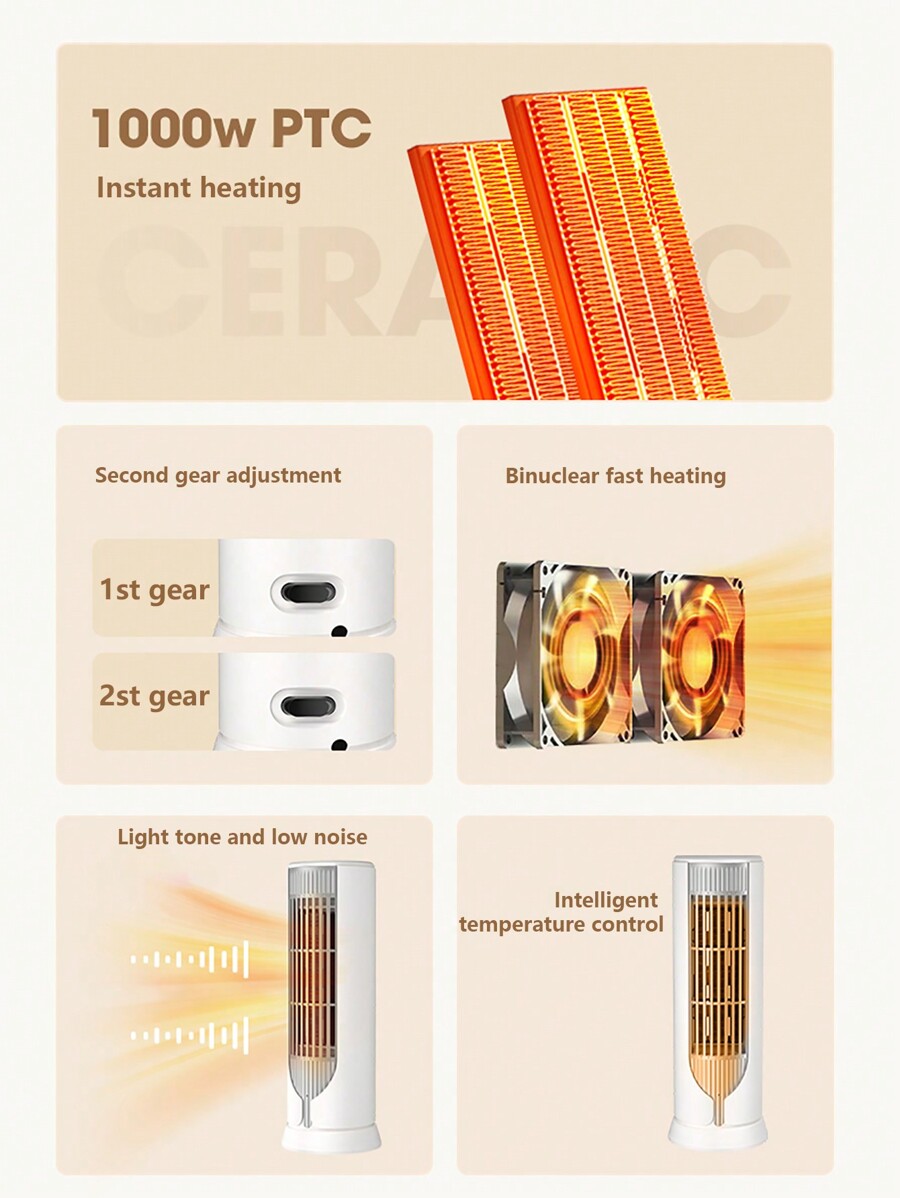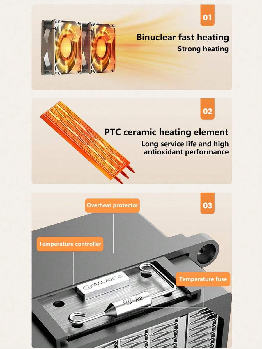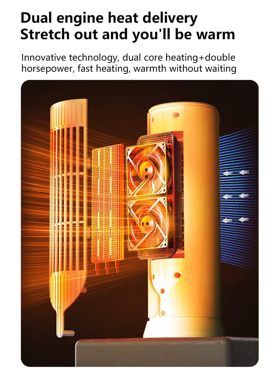 Energy-saving fan. Instant heat, intelligent temperature control, dual-core heating, long service life, high antioxidant performance, equipped with advanced three-dimensional heater fan, heating are working effectively.
