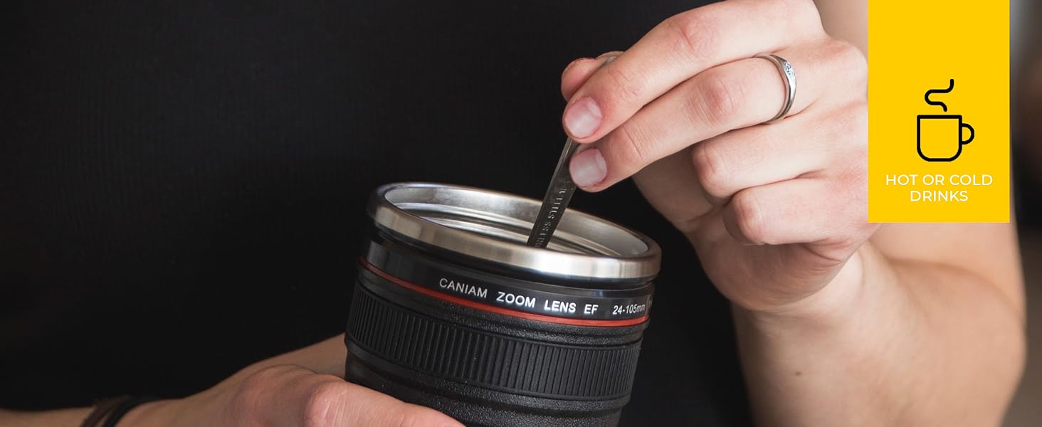Transform your coffee breaks into a creative experience with the Lens Mug EF24-105, a stainless steel coffee mug designed to resemble a professional camera lens. Perfect for photographers and coffee enthusiasts alike, this unique mug blends functionality with a stylish, camera-inspired design.We are 100% confident you will be delighted by the quality and fun of your Camera Lens Mug.