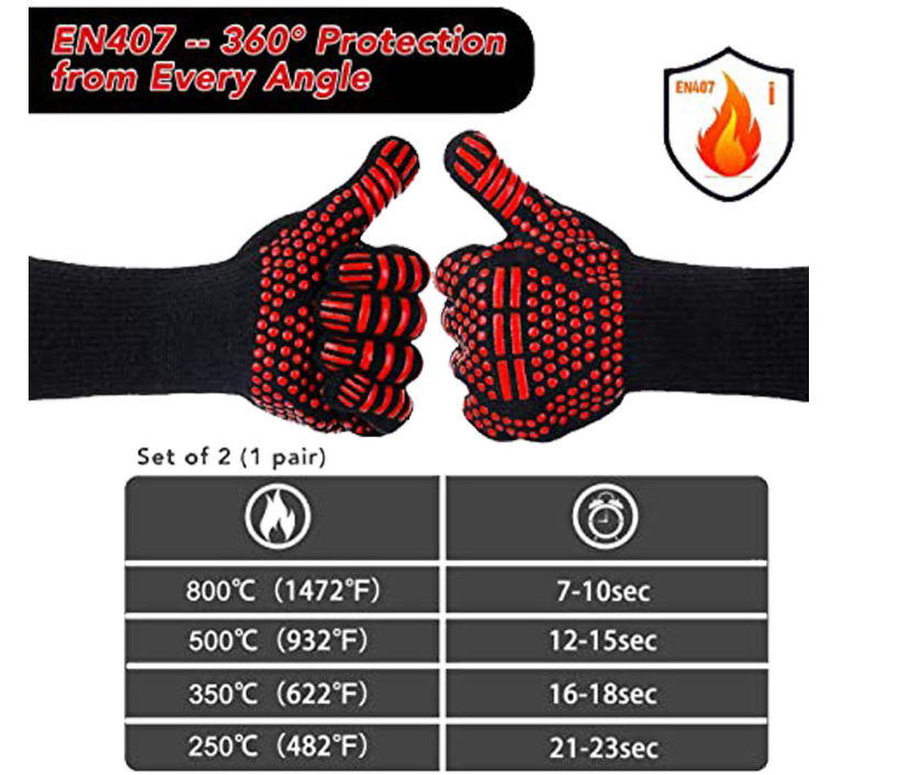 Enhanced Heat Resistant: Our grilling gloves provide higher heat Resistant (1472°F) form older gloves(934°F). When you are cooking, baking, pot-holding, smoker grill handling and you can focus on your cooking things. Note: They are heat resistant, not heat proof.