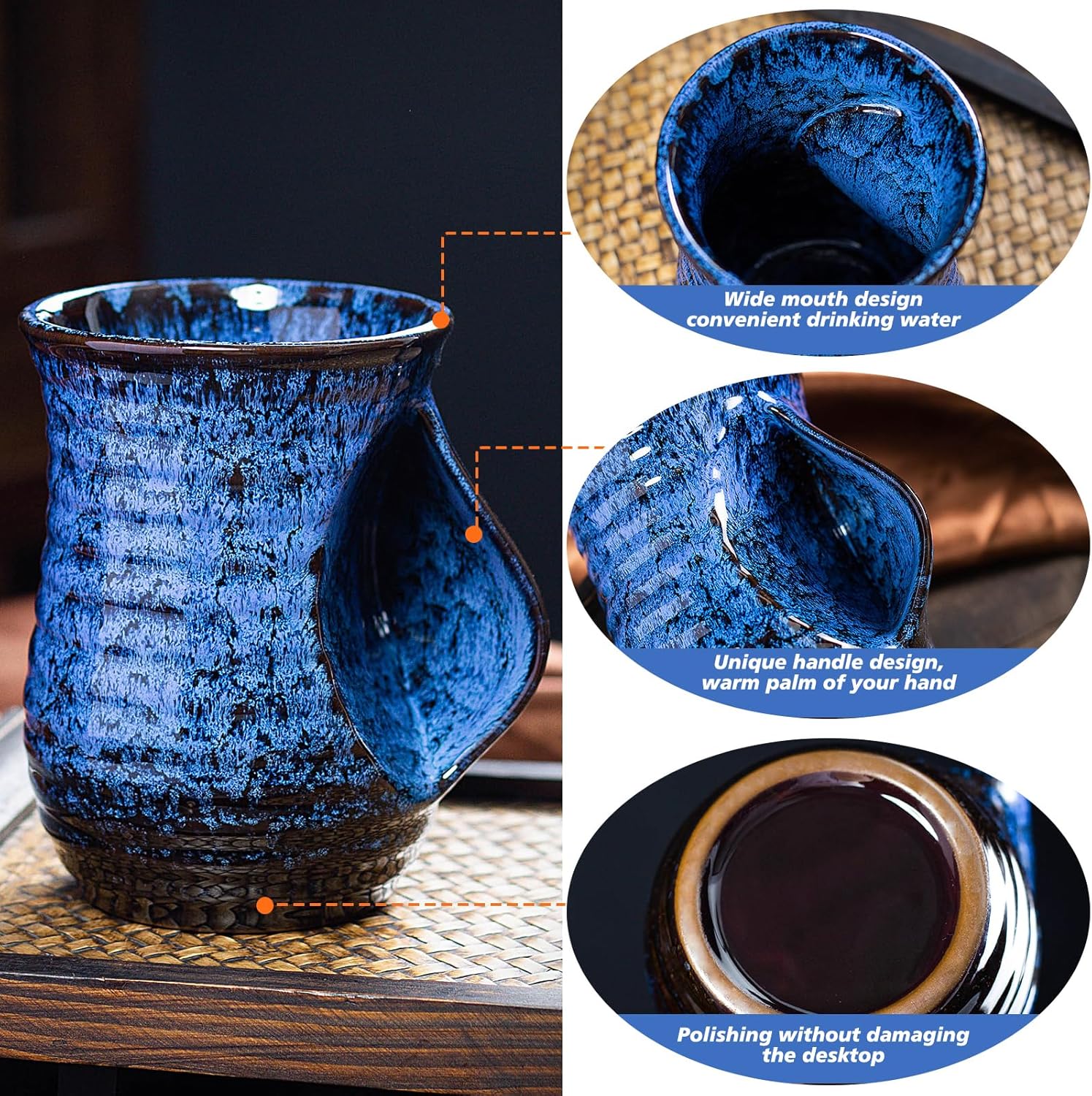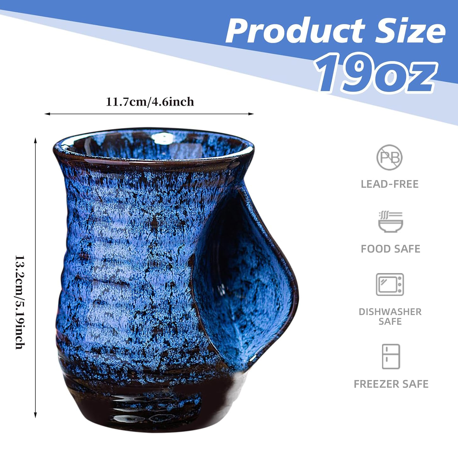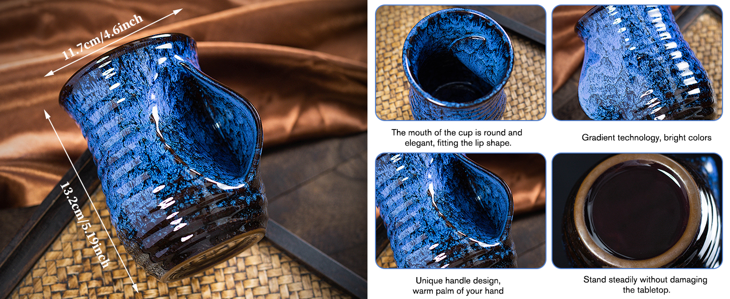 Durable Hand Warmer Mug: Our ceramic mug is crafted from high-quality, lead-free, and cadmium-free ceramic, fired at high temperatures for a smooth and refined finish, ensuring safety and durability. The mug measures 5.1 inches in height and has a capacity of 19 ounces, making it perfect for everyday use.Each cup is hand-glazed, the ultra-high temperature kiln reaction results in its color and pattern are unique, each cup is a special work of art.