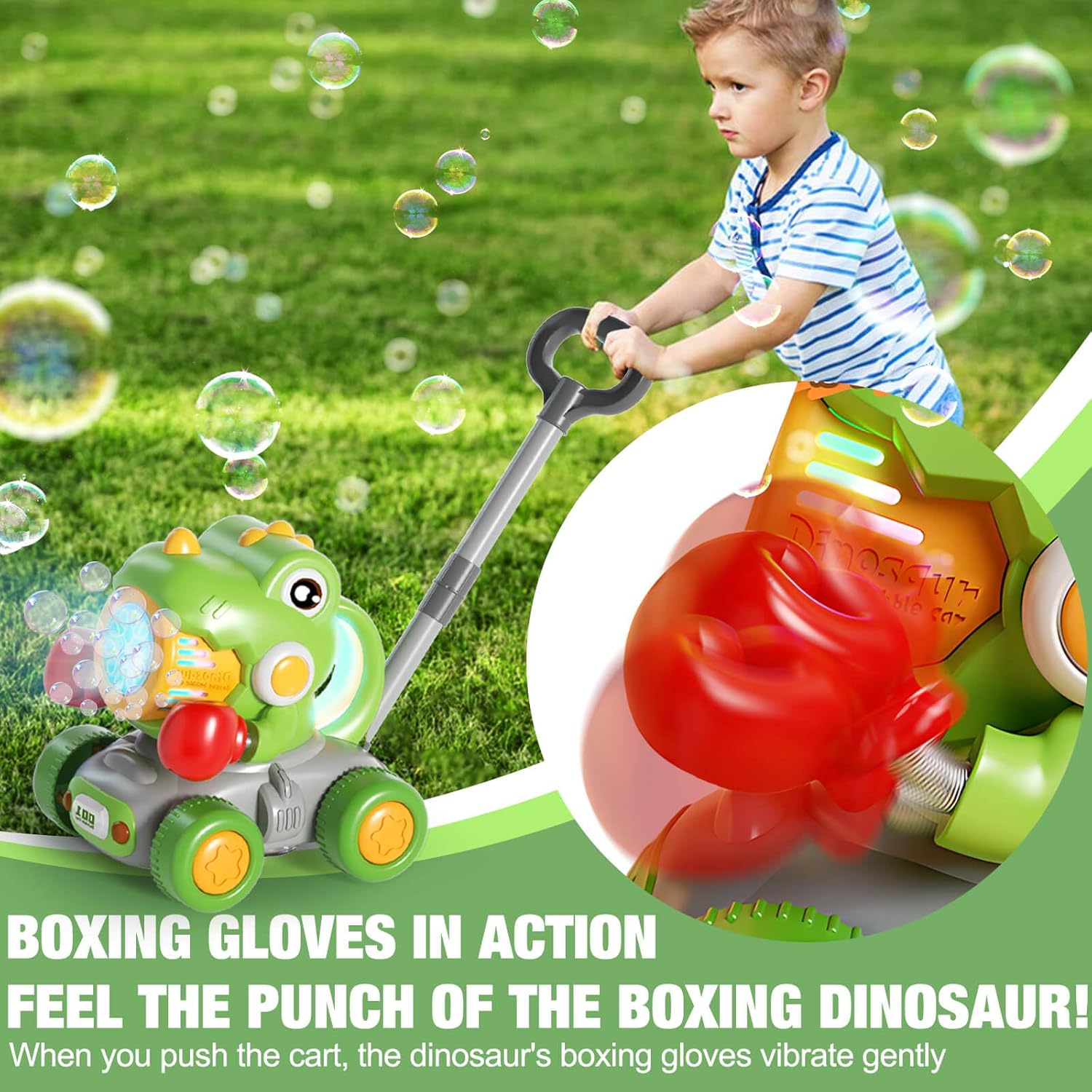 🦖🦕Unique Dino-Boxing Design:This push - type bubble machine features a one-of-a-kind dinosaur-boxing design. It's a real head - turner, appealing to kids' love for both dinosaurs and boxing