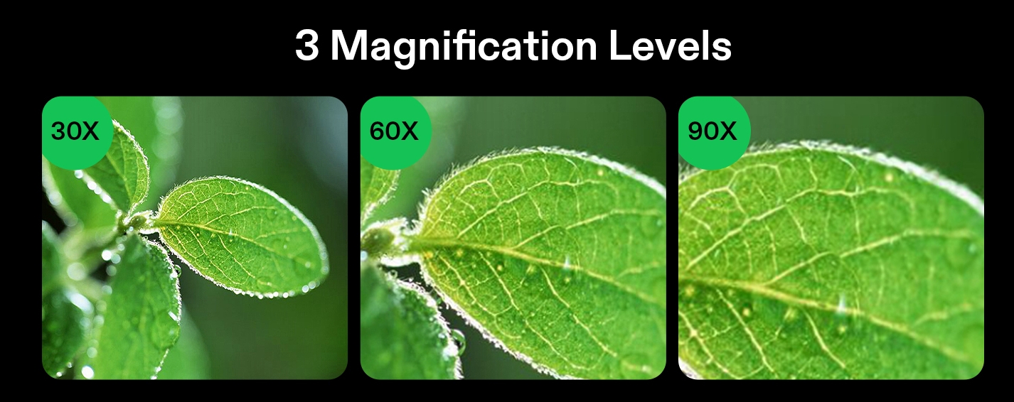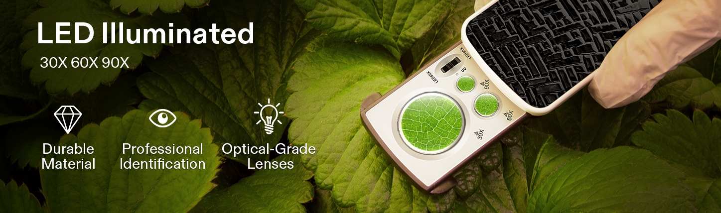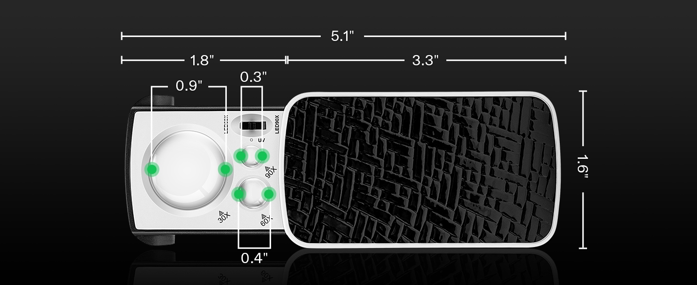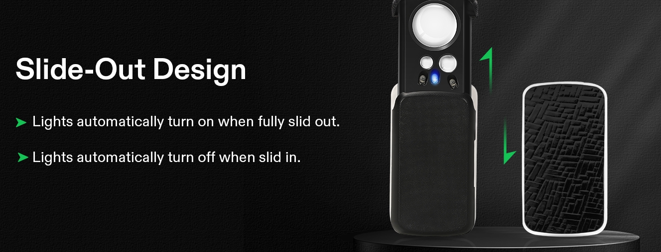Offers 3 progressively stronger magnification levels of 30X, 60X, and 90X to accommodate varying needs; Each lens provides a clear and precise view, enabling inspection of minute details,This small sliding magnifying glass is widely used in jewelry identification, real and fake banknotes, reading, mechanical inspection, clothing fabric inspection, cutting tool sharpness and other occasions