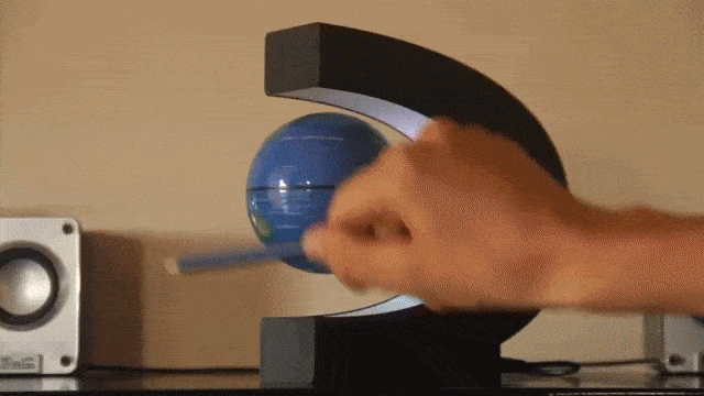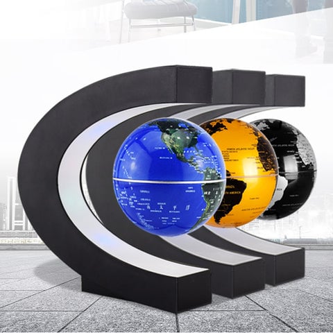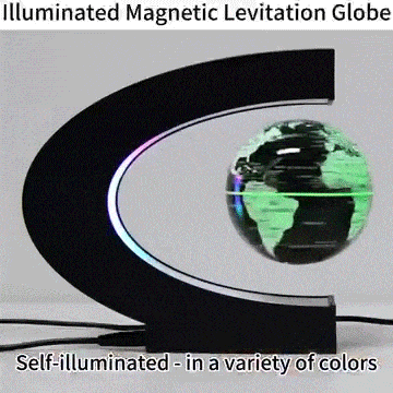 🌟UNIQUE LITTLE DESKTOP DECORATION -- The floating globe measures 3 inches/8.5 cm in diameter. Holding the ball in your left hand and the hanging tool in your right, slowly remove the hanging tool and the globe will successfully float. This high tech gadget has an LED light feature that is very cool when turned on in the dark. A high-tech gadget for all ages!