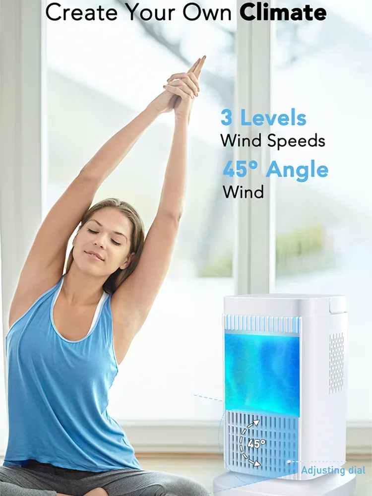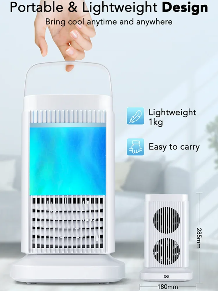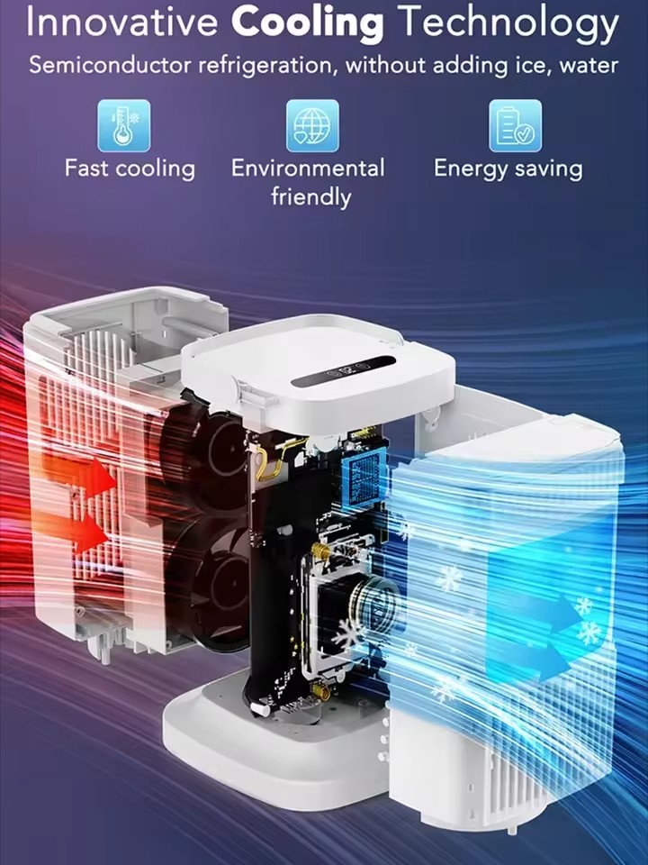 The bedroom air conditioner runs at a low decibel and sleeps comfortably. The silent motor with semiconductor refrigeration allows you to sleep peacefully. The silent cooling fan ensures that blowing cold air is cost-effective even during the summer heat wave.This compact desk fan is incredibly lightweight and easy to carry around. Its sleek and modern design blends seamlessly with any decor, making it suitable for various environments such as offices, bedrooms, and living rooms. Stay cool wherever you go with this portable and stylish desk fan.