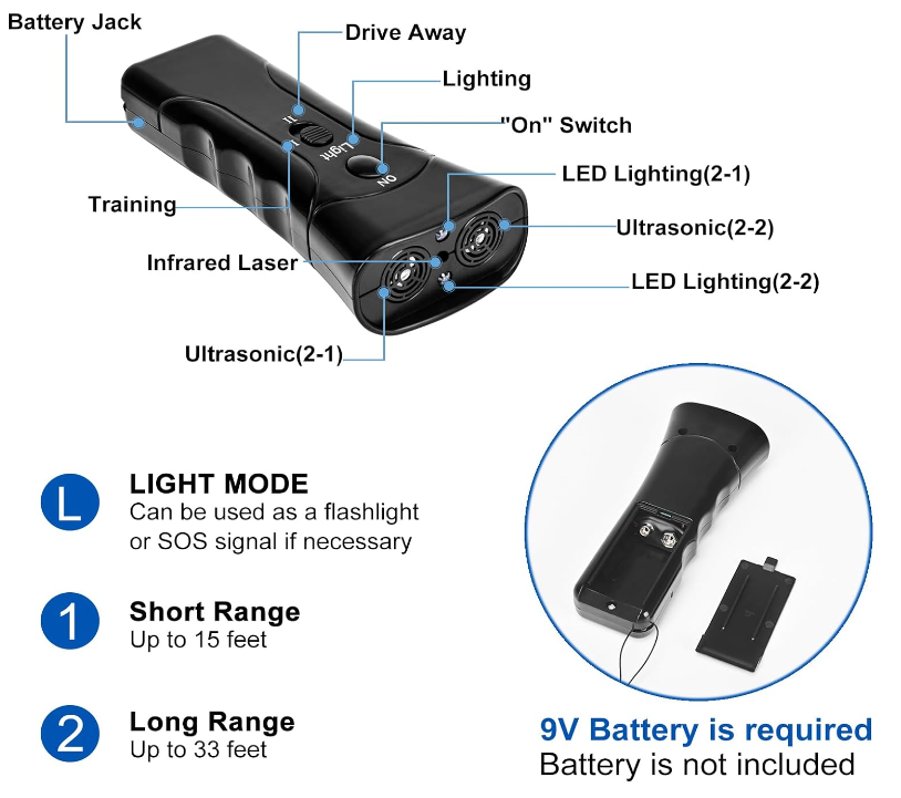 Anti Barking Control Device uses an ultra-high-pitched sound that is inaudible to humans, but will instantly get your dog's attention. This sound is so rare for your dog that it will stop when unwanted behavior occurs.