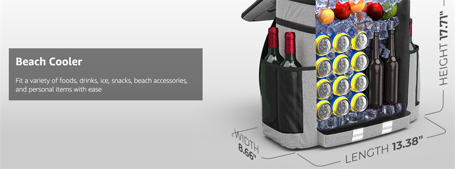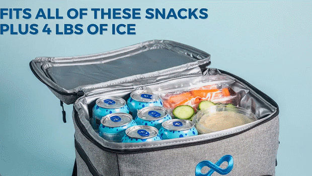 It may look compact and sleek, but it’s capable of holding more than traditional mini coolers. Fitting several cans, bottles, ice, food, and even personal items such as beach essentials, phone, wallet, and keys, you’ll have everything you need for your next adventure right on your back.