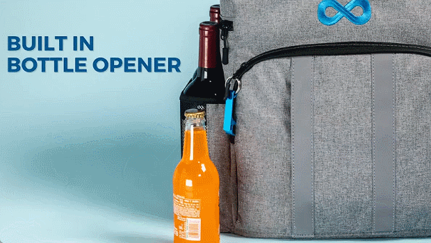 Our portable cooler features a front pocket for small items, dual side pockets for wine bottles, and a keychain bottle opener. Ideal as a picnic backpack or lunch backpack for men