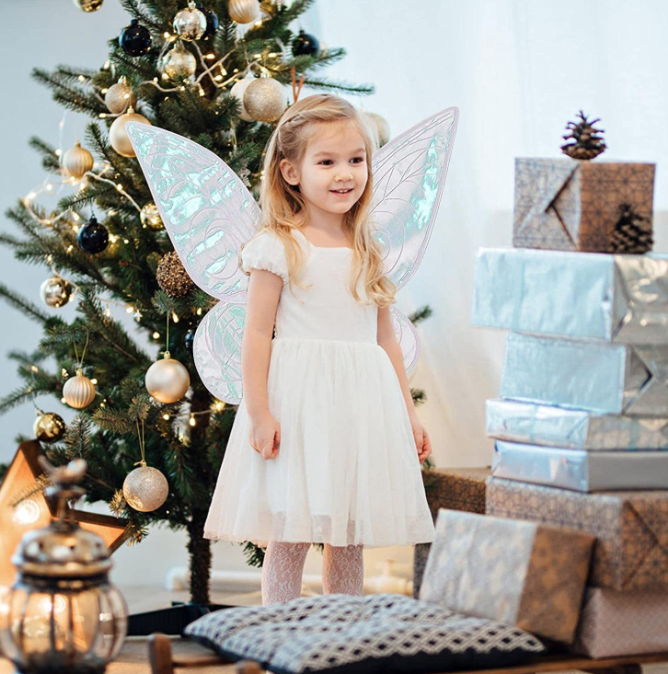The fairy wings are made of transparent organza, light as silk and yarn, fluttering butterfly wings left and right flashing dreamy colors, perfect for children and women.