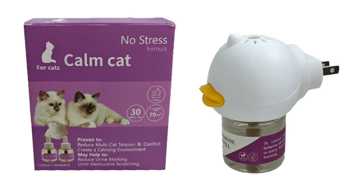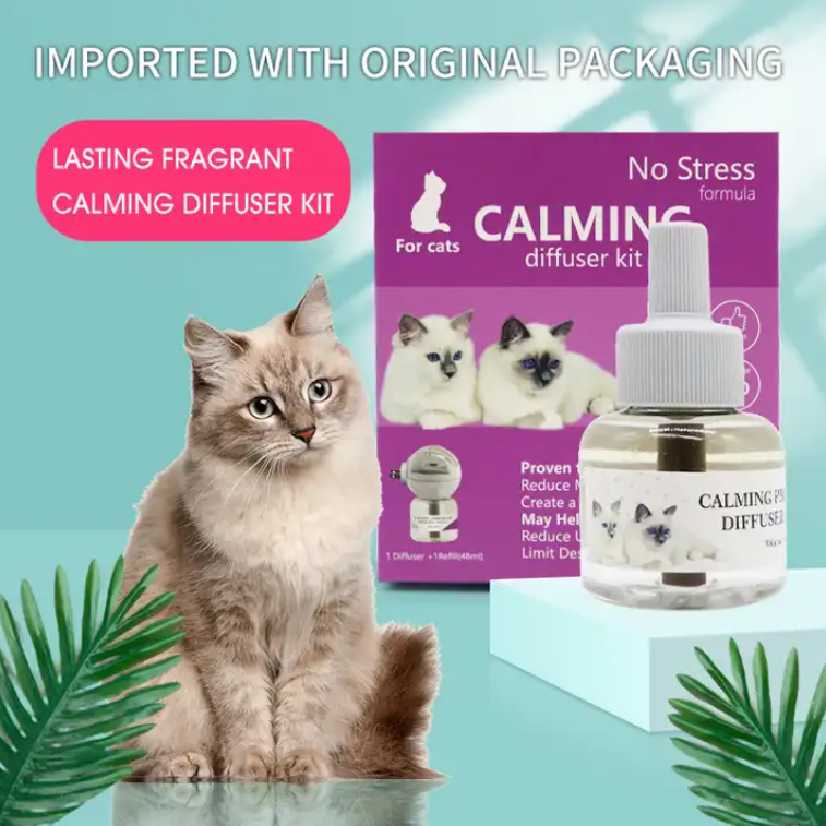 Cat Anxiety Relief The diffuser sends a strong signal of safety and comfort to calm your cat. After using cat diffuser, most cats will exhibit satisfactory behavior within two weeks.