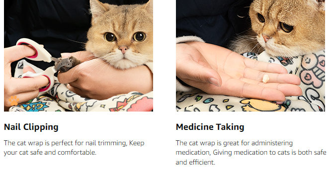 This cat swaddle wrap is suitable for nail trimming, teeth brushing, feeding, ear cleaning, administering injections, and more, essentially meeting all of your cat's daily grooming needs. It saves you time and money on pet grooming services. Its suitable size and lightweight design make it the best choice for daily cat care.