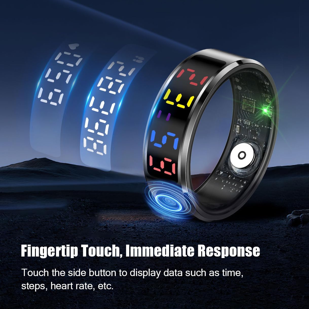 The smart ring enables remote control for taking photos, flipping e-book pages, switching short videos, and pausing or playing music. With a simple double-tap of your finger in the air, enjoy effortless air gesture control, easily free your hands.