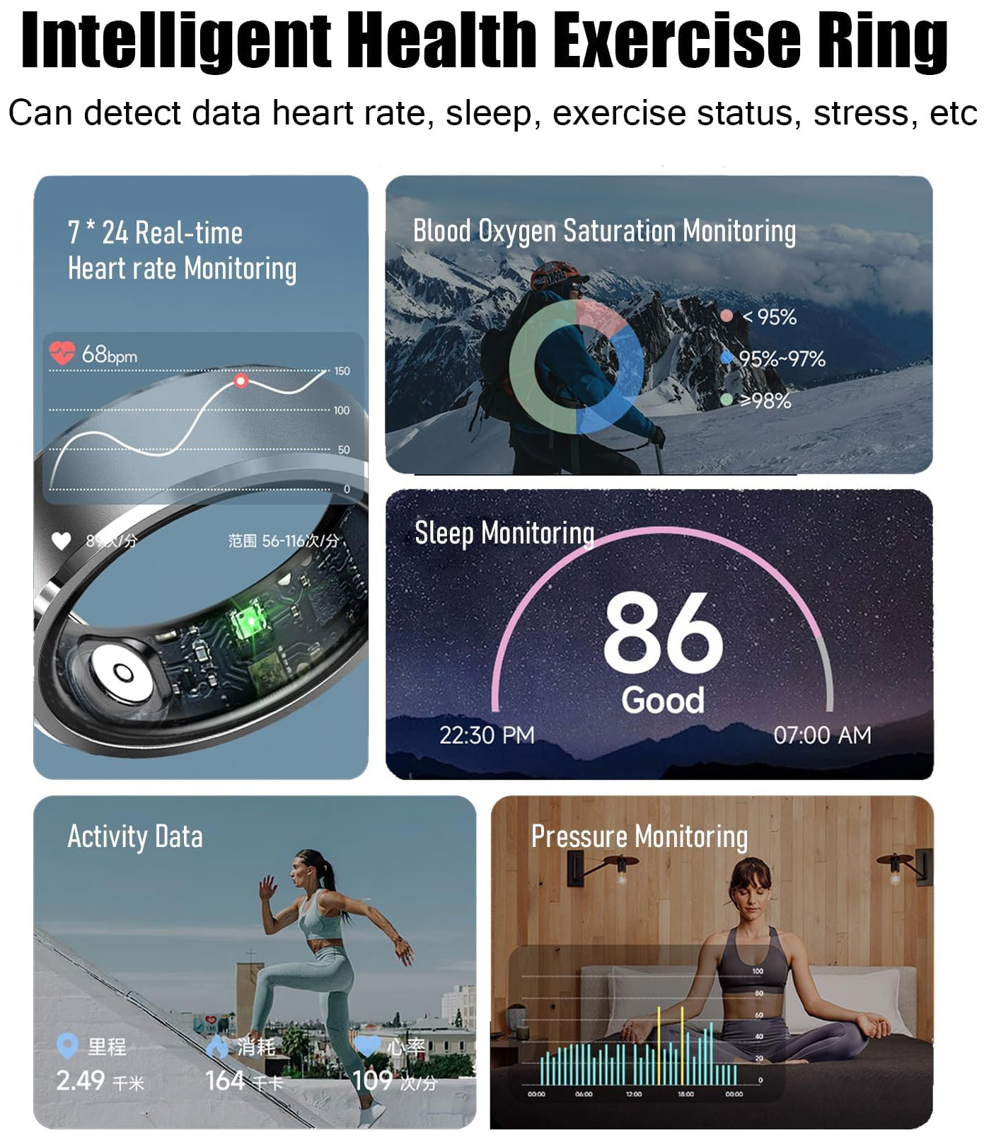 Equipped with high-precision sensors (heart rate, SpO2, sleep tracking) and AI algorithms, it analyzes real-time data to generate personalized health reports. It also supports abnormal indicator alerts, meeting users' needs for chronic disease management, fitness optimization, and overall wellness improvement.