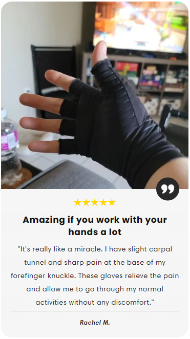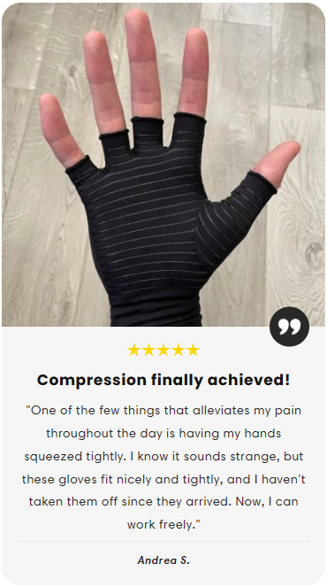 Our special gloves are designed to give just the right compression to the parts of your hands that hurt.