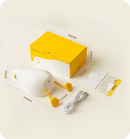Don't be afraidof the dark! Our cute Duck Night Lamp is a companion for those who are afraid of the dark. The duck emits a soft glow, which automatically switches off after 30 minutes, so you can dream away peacefully.