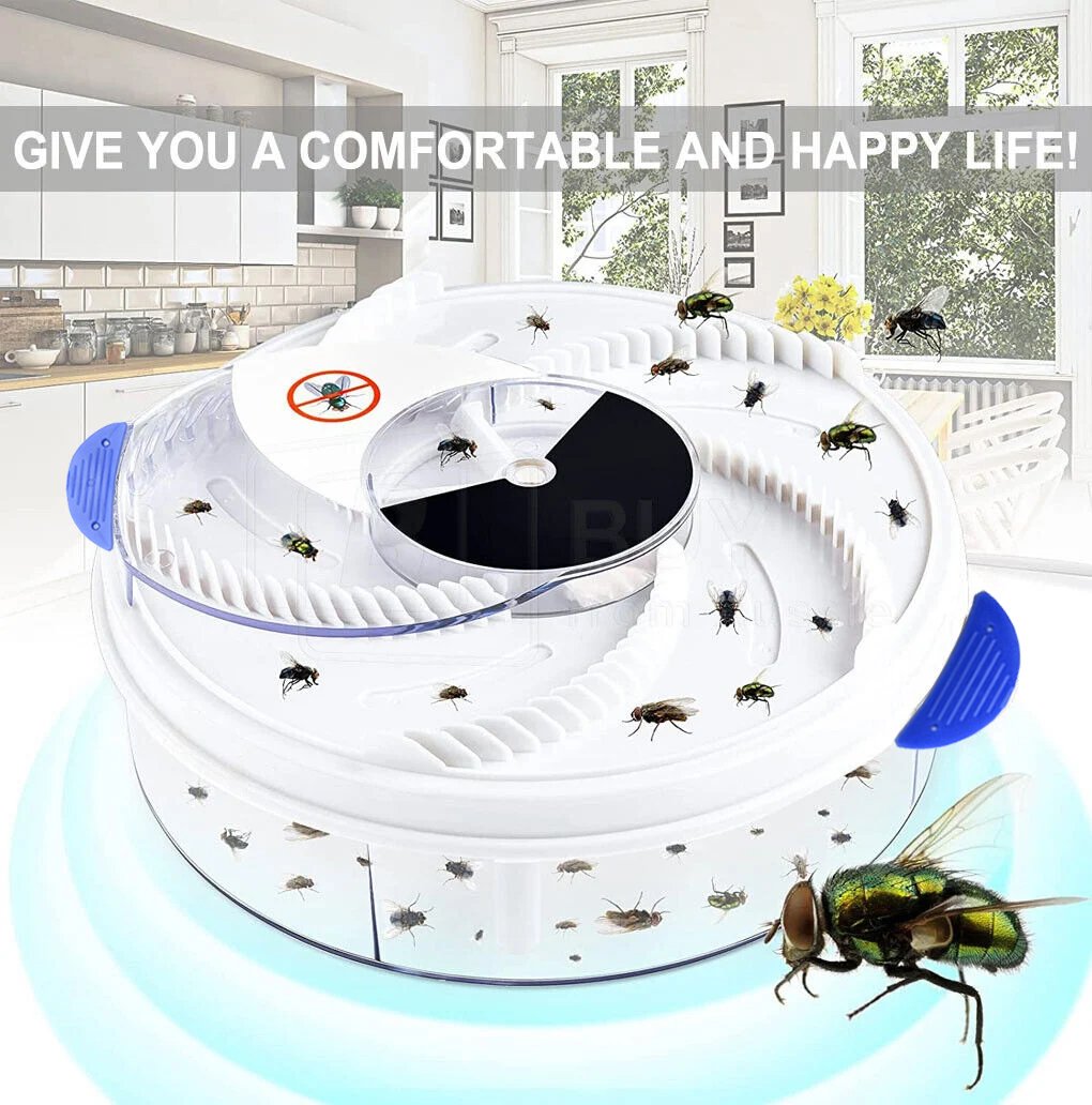 Professional: This fly trap traps flies into the box by rotating the outer leaf, which can trap many flies in a time. Its structure is simple, and the elderly can use it easily.