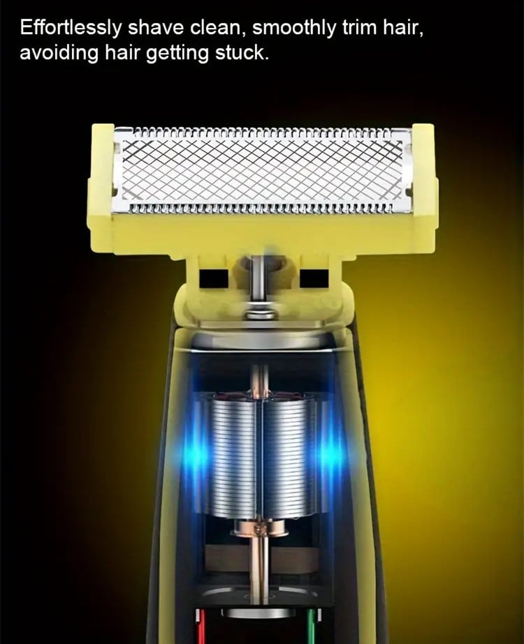 The powerful motor paired with a high-quality stainless steel double-edged blade ensures fast and efficient trimming without any pulling or skin irritation. The blades are removable and washable, simply rinse the blades under running water for quick and hygienic cleaning. (Note: Do not immerse the entire trimmer in water)