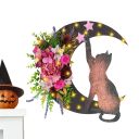 Halloween Front Door Moon Black Cat Rose Wreath With Lights