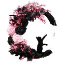 Halloween Wreath Decorations: 2025 moon cat black halloween wreaths for front door adopts classic black cat, moon, rattan and roses Halloween elements! "Look, there's a kitten standing up and trying to touch the moon"! Very fun, create a mysterious and scary Halloween atmosphere for your home