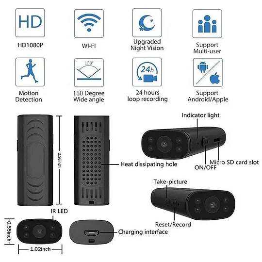 【 WIFI Connection and Button Control Dual Operation Mode 】: This innovative camera can be controlled remotely via Android and iOS. Or if you don't want to use the app and WiFi connection, press the button on the camera to record and take pictures. SUPPORTS TF CARD or CLOUD STORAGE Save your recordings on a TF card (up to 128 GB) or the cloud (secure).