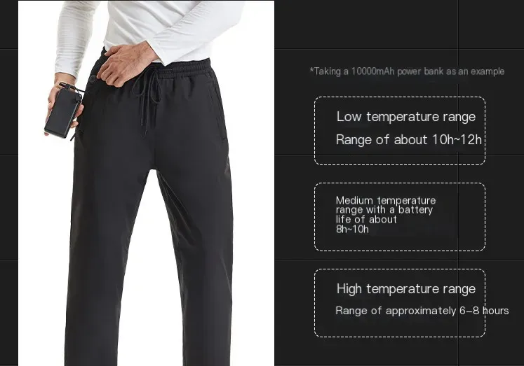 With 12 lower body heating elements carefully positioned around key areas like the hips, knees, and calves, these base layer pants provide targeted warmth exactly where you need it.