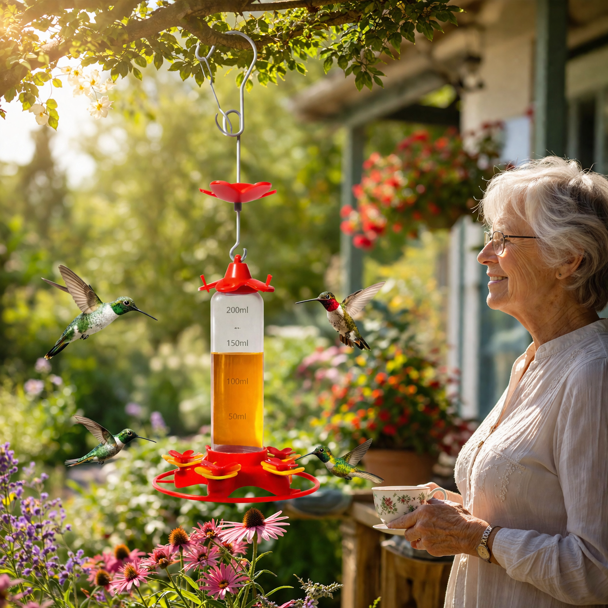 1. The "Golden Capacity" (200ml / 6.8oz) Bigger isn't always better. Large feeders often hold nectar for too long, allowing it to ferment and grow harmful mold before it’s finished. Our 200ml "Golden Capacity" ensures the nectar stays fresh and safe, encouraging daily visits while reducing waste.