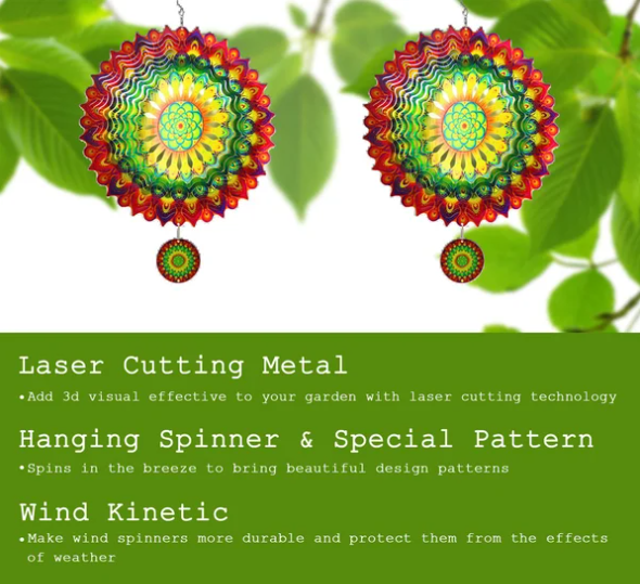 Stunning Three-Dimensional Effect——The wind spinner is laser-cut from high-quality, durable stainless steel, and has a mirror reflection design. It creates a pulsing, magical, and three-dimensional effect that will mesmerize you. Depending on the environment and light, it can take on different colors, making it a beautiful and unique addition to any indoor or outdoor space.