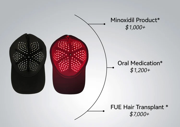 Compared to expensive and invasive hair transplant treatments or oral medications with significant side effects, the Laser Cap offers you the most cost-effective choice. Just 30 minutes a day can help your hair grow denser and healthier.