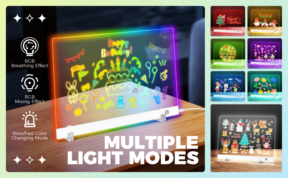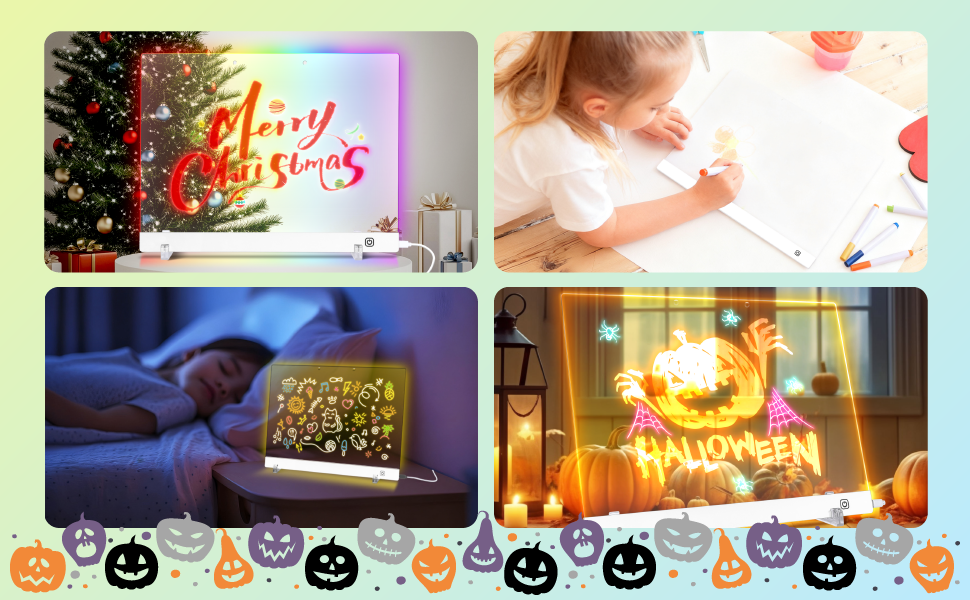 ✨ Durable & Reusable Design: Made of high-quality acrylic, the LED acrylic board is sturdy, easy to wipe clean, and built for endless writing and drawing fun.