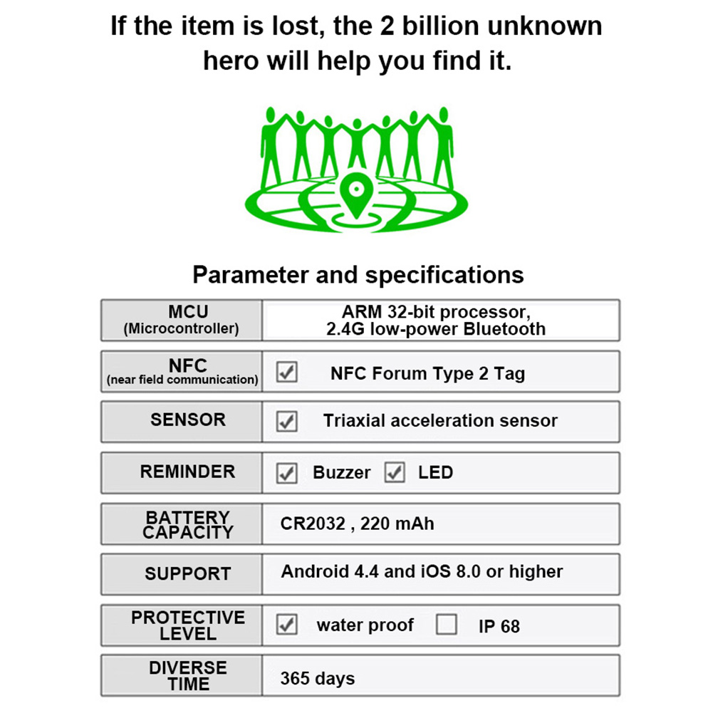 4. Proximity search function: when the Bluetooth-compatible is connected, click search to make the Findmytag make a sound, and the owner can find the location of the item.