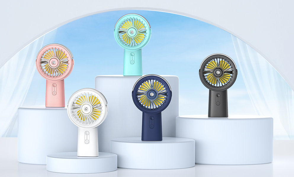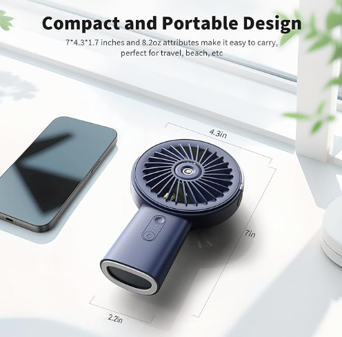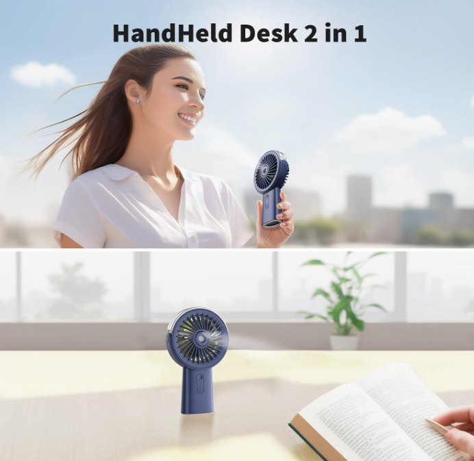 Thanks to the base design, you can used it as a handheld mister fan when outdoor and a mini desk fan on a flat table in the office. Anti-slip mat at the bottom of the base to keep it stable.