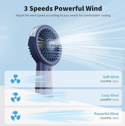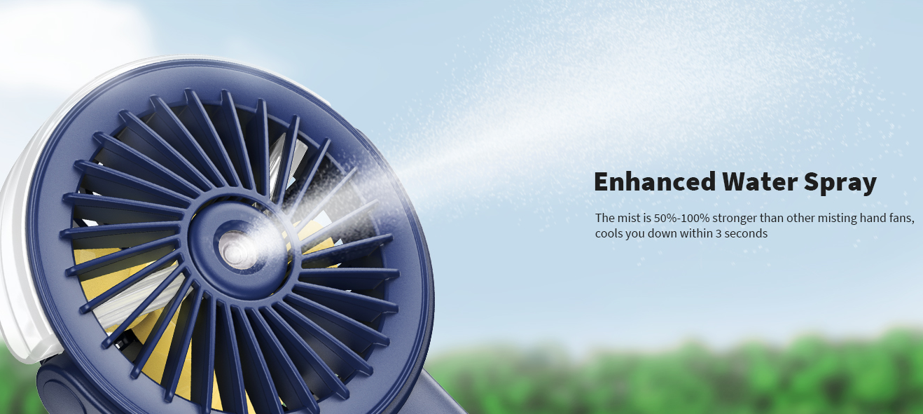 With the help of the powerful motor and flexible fan blades, otlonpe portable misting fan generates stronger airflow to cool you down within 2s. 3 speeds and 90° rotatable provide the most comfortable wind to meet your needs in different occasions.