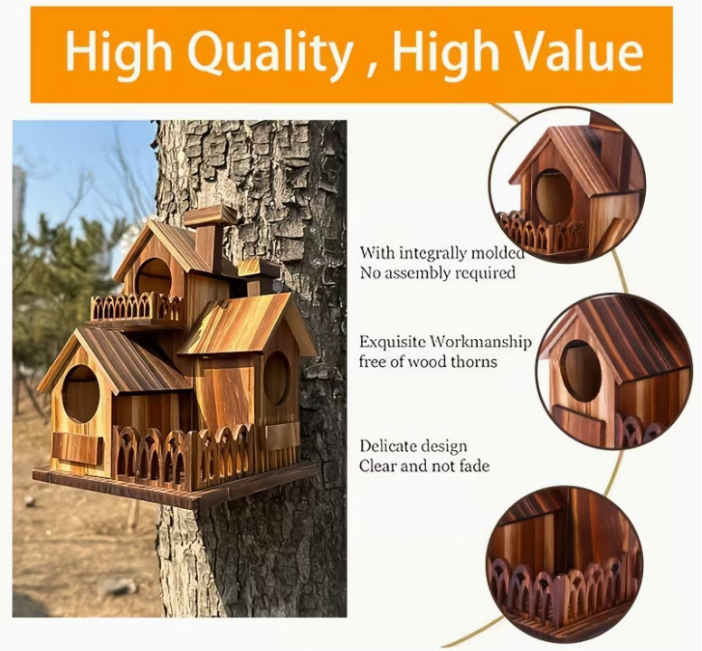 Each tower has its own 1.57‑inch (4cm) round entrance, allowing multiple bird families to nest side‑by‑side, or giving a single pair extra space to choose their favorite spot.