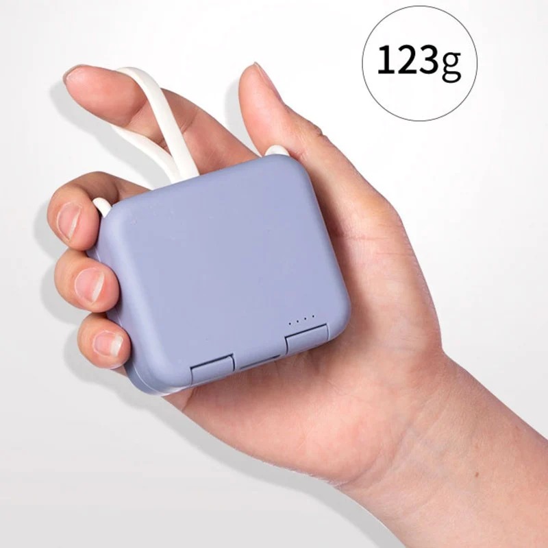 The new creative design, compact and portable, brings you a different portable power bank experience! A pocket-size power bank for phone charging on the go. The power bank weighs only 123g, and the hanging lanyard with rounded edges makes it compact and portable.