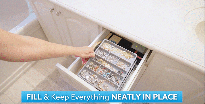 Multi-Purpose Drawer Organizer is here to rescue you from the chaos and transform your living and working spaces. Use this ingenious tool to store a myriad of items - from precious jewelry to kitchenware, makeup essentials, and office supplies, every item finds its designated spot with ease and elegance.