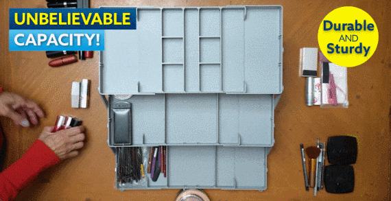It’s like having three drawers in the space of one. With 12 interchangeable dividers, you can customize each tier and keep everything neatly in its place.