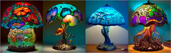 Mushroom glass, inspired by Louis Comfort Mushroom, brings a splash of color and personality into any interior. Highly stylized and dreamlike, the art glass dominates the design, with a glass shade that casts colorful light, making Mushroom Style Lighting lamps and fixtures perfect for reading or creating an ambient mood. When looking to add a signature element to your room, Mushroom style lights will set a stage of color and focus.