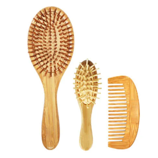 These hairbrushes are made of naturally sustainable Nanzhu. Nanzhu material pins will not damage the hair or scalp and help create sleek and shiny hair.