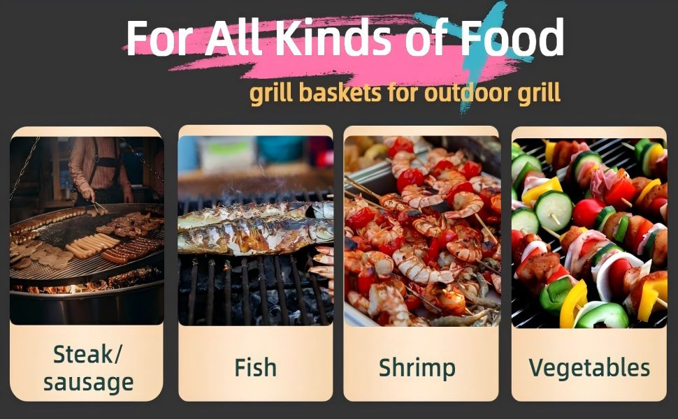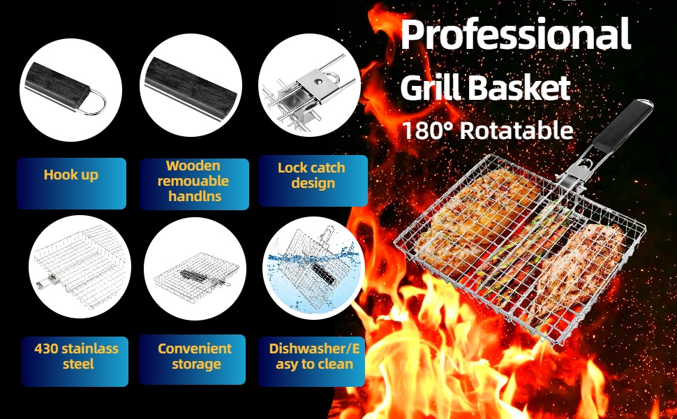 🔥【430 Stainless Steel Construction】 - Made from 430 food-grade stainless steel, these kabob grill baskets are built for durability and long-lasting use. They are lightweight, easy to handle, rust-resistant, and dishwasher safe, ensuring that they can withstand numerous grilling seasons.