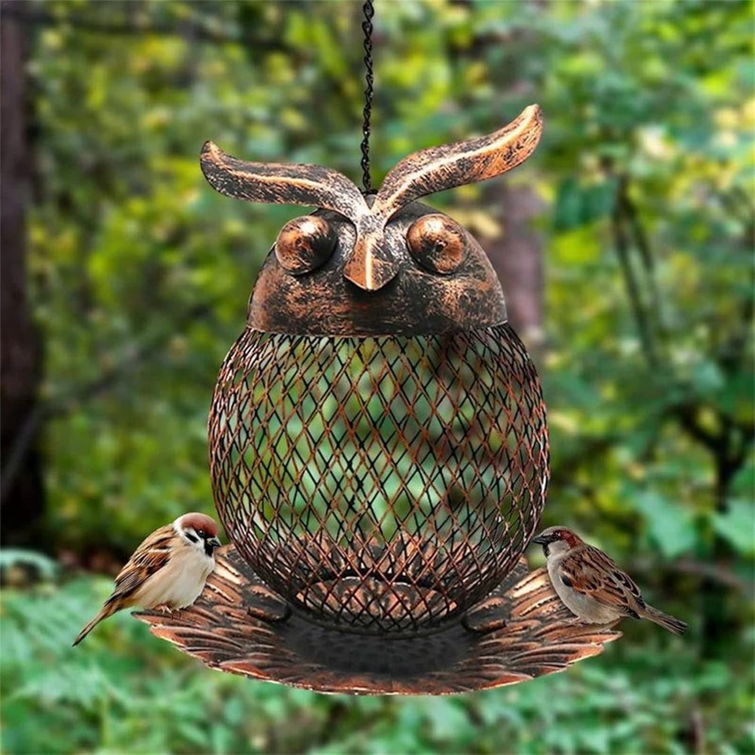 Unique Design: Cute owl shaped design bird feeder and made of high-quality retro metal materials, birds can't chew or destroy the birdfeeder. You can watch the birds from the windows, deck or courtyard.