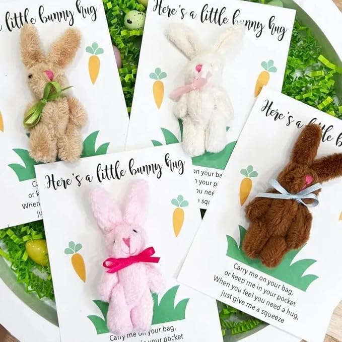 4 unique bunnies in pastel colors (with floral accents!) double as Easter basket stuffers or desk charms. Pair them with chocolate eggs or gift solo for a heartfelt surprise.
