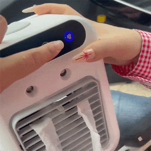 Different from other ordinary desk mini air conditioners, our air conditioner portable features a unique 3 air duct design. It has a lot of holes on the side to form 3 air intake ducts, with a 10W power performance motor and a 9-blade fan to blow more powerful and cooler air.