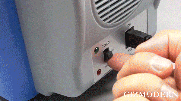 This portable refrigerator has the functions of cooling, heating and keeping warm. The hot and cold switch is convenient to control, COLD is for cooling, and HOT is for heating.